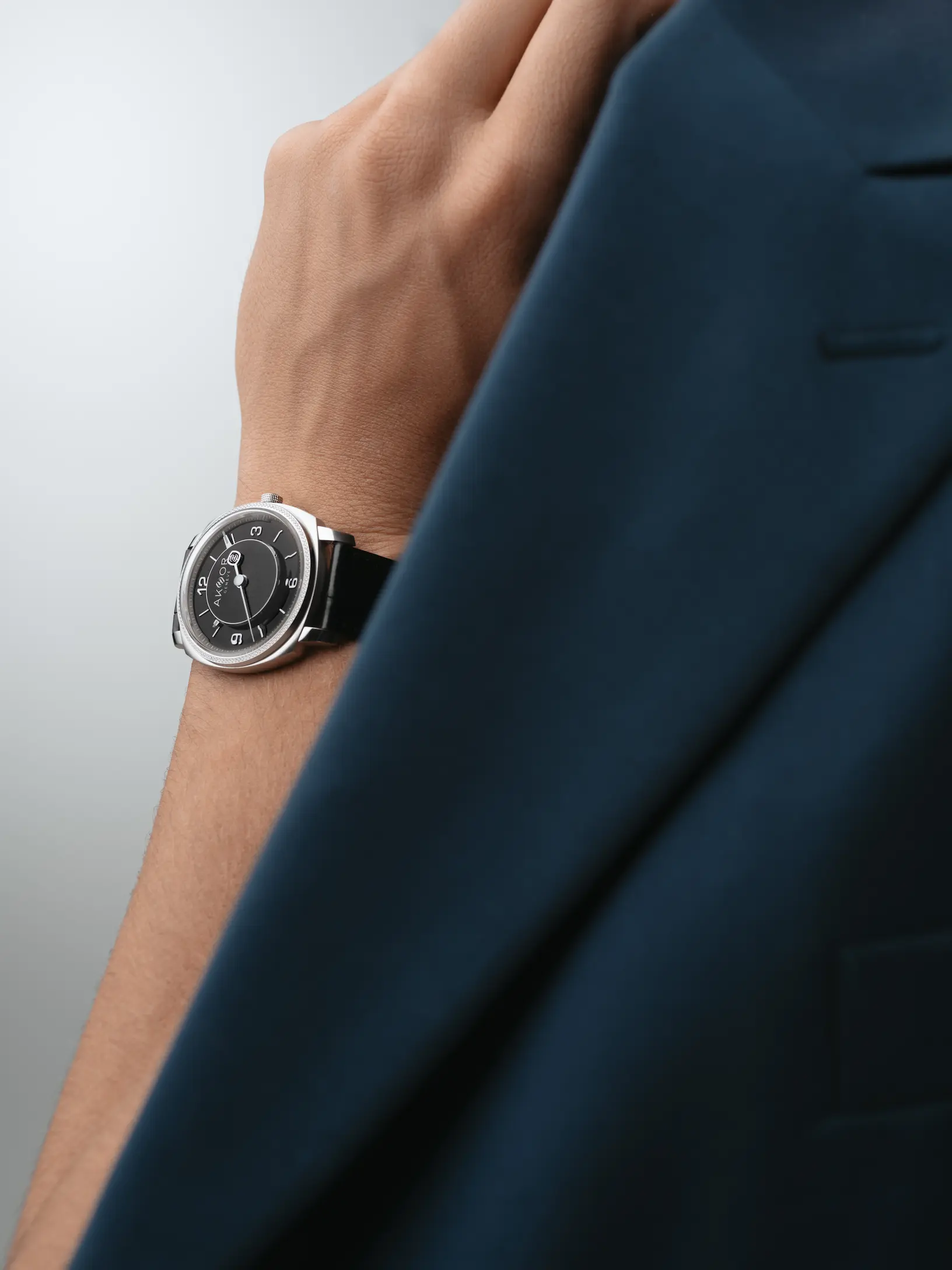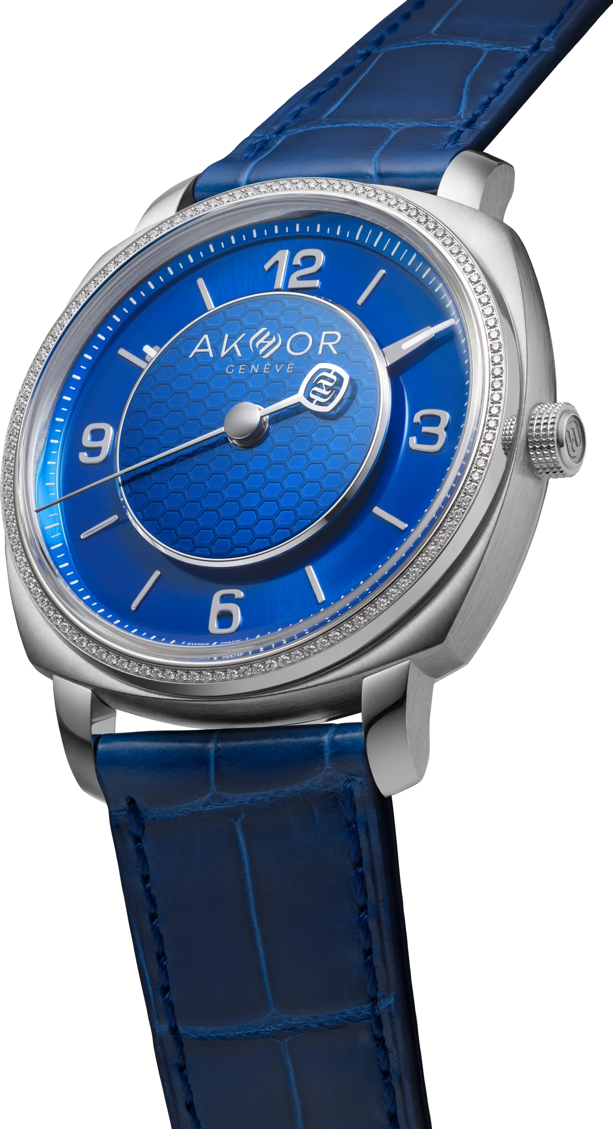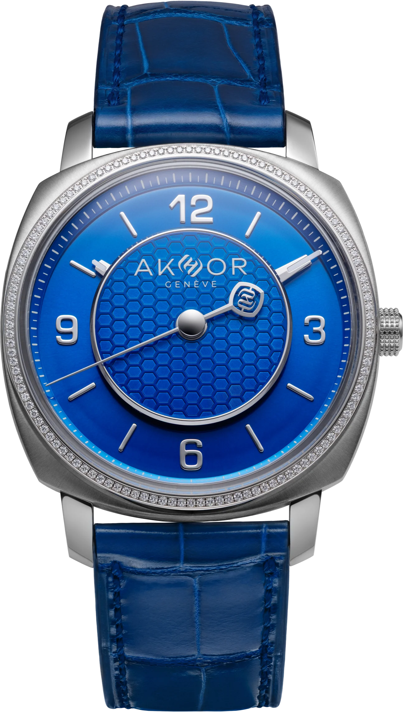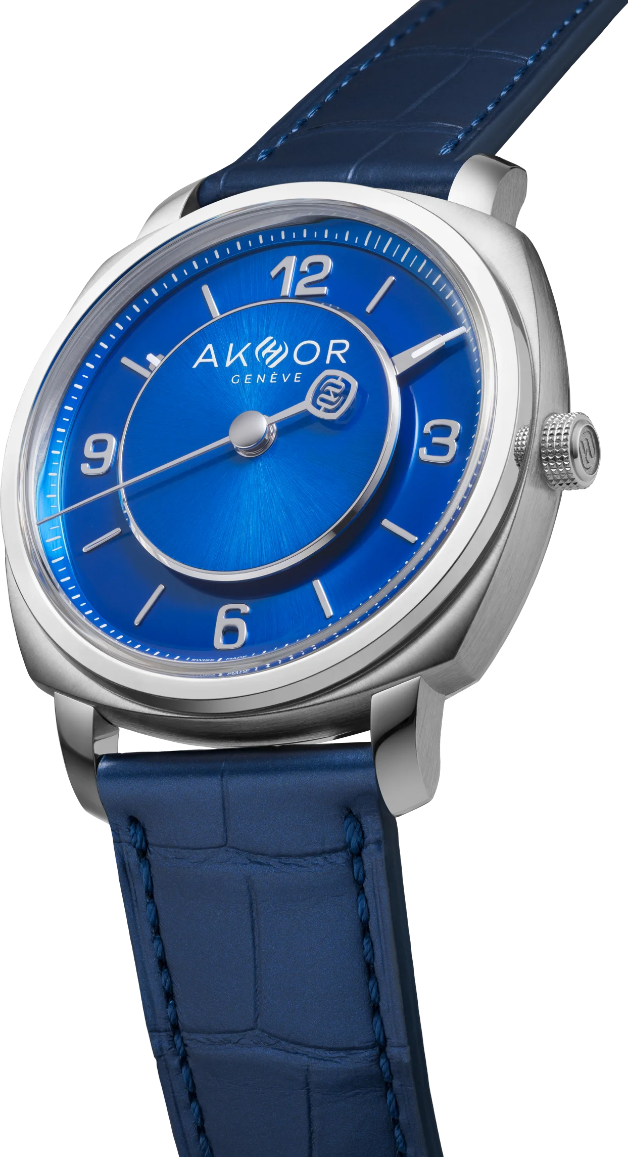AKHOR unveils an azure-blue edition inspired by Swiss alpine winters, with a 39mm cushion steel case, manual movement and COSC certification.